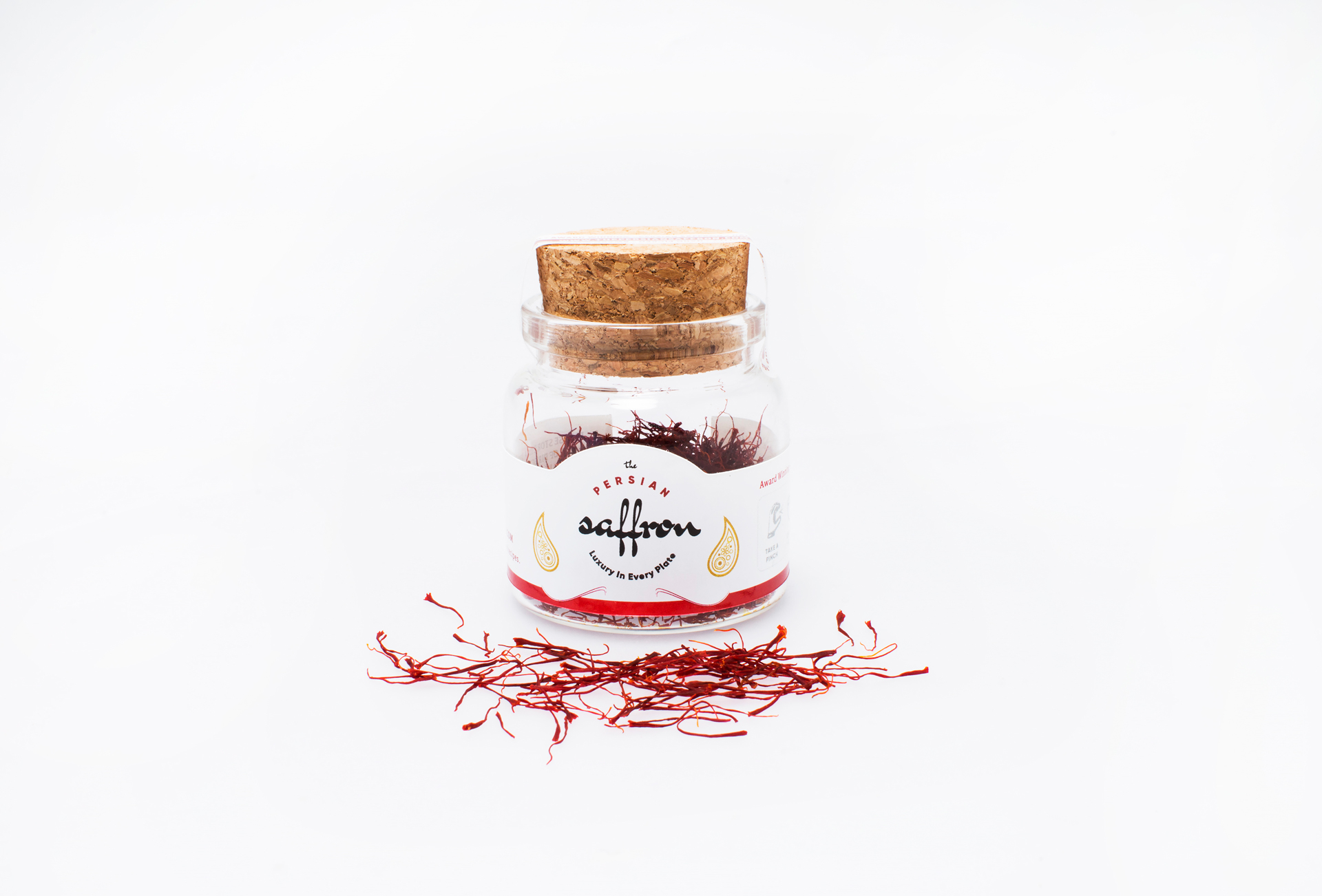 Labels for the Iranian Saffron (Sargol). Harvested from highlands of Iran this premium quality saffron rich in colour and flavour.